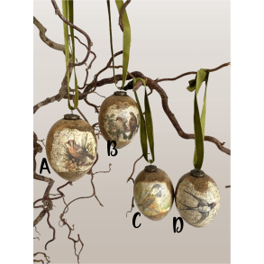 Hånddekorerede styrofoam-æg til dekoration.