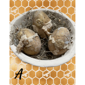 Hånddekorerede styrofoam-æg, med påskemotiver